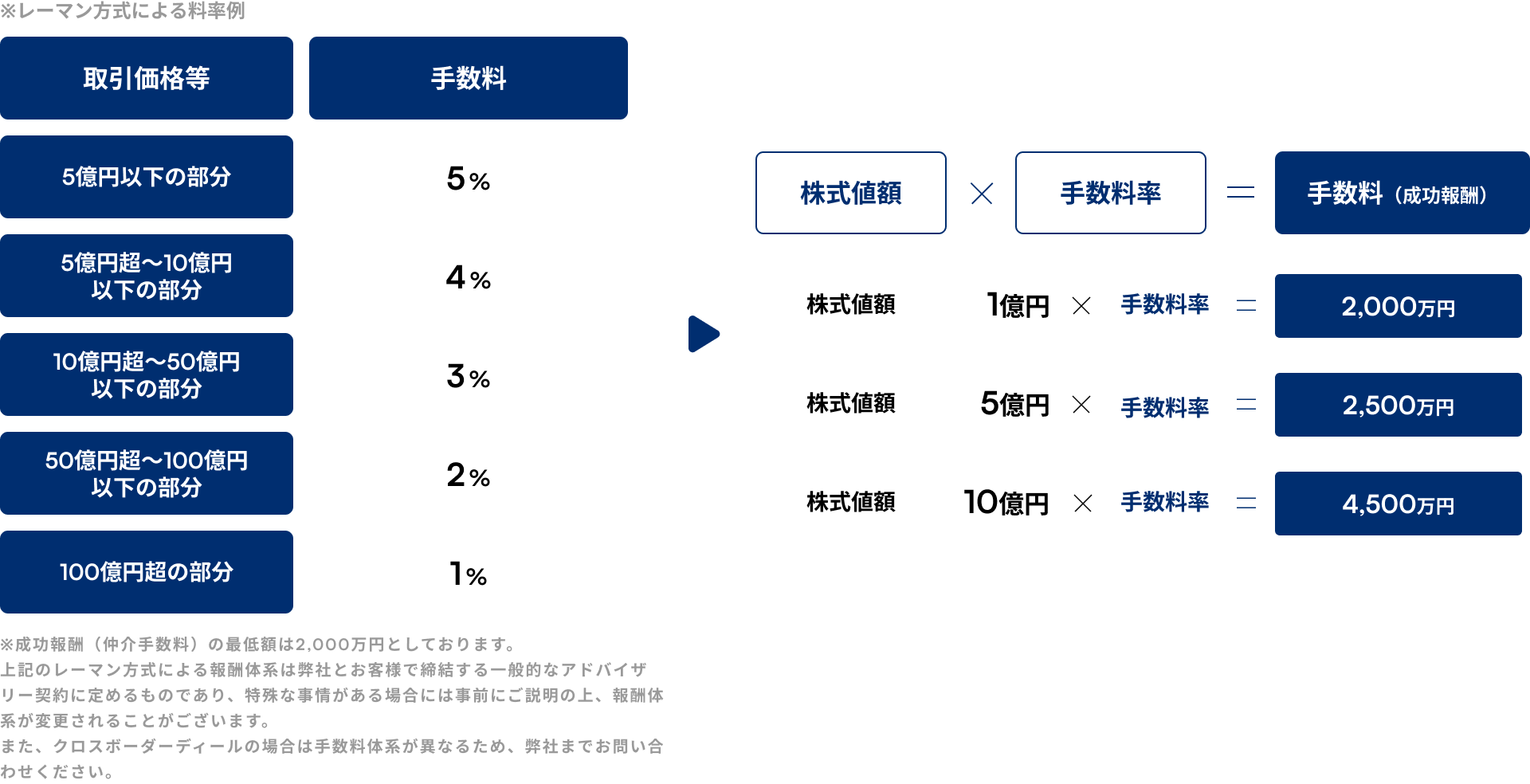 一般的な仲介会社の料金体系は、株式値額と負債額を合わせた金額(移動総資産)を